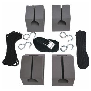 Car Top Cartop Canoe Carrier Kit INCLUDES: 4 foam support blocks 2 1/4" x 15' diamond braided polypropylene ropes 4 rope hooks 1 1" x 15' adjustable tie down strap with cinch buckle 1 mesh storage bag
