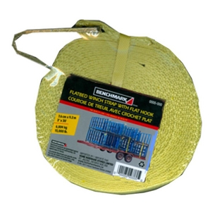 Straps/Ropes Winch Strap 3" (76.2 mm) strap x 30' (9,140 mm) 15,000 lbs. (6,804 kg) maximum break strength Heat treated yellow chromate flat hook Yellow polyester Safe work load - 5000 lbs.