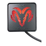 Hitch cover doubles as brake light; Dodge logo backlit in red Fits 2" hitch receiver Plugs into 4-way flat trailer wire adapter or hardwire to vehicle Shank locks into existing hitch pin or lock