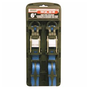 Rachet/Cam Straps - Plated cam buckle - vinyl covered steel S hooks Max load - 1200 lb each Working load limit - 400 lb 1" x 6' blue webbing