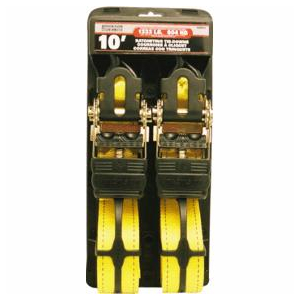 Rachet/Cam Straps Ratchet Strap Set Molded rubber handles and release - vinyl covered steel S hooks Max. load - 4000 lb Working load limit - 1300 lb 2" x 10' yellow webbing