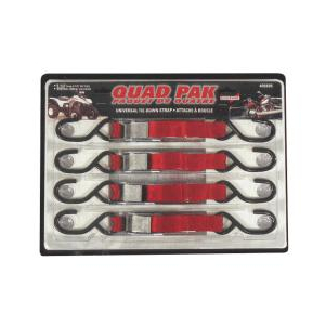Rachet/Cam Straps Universal Tie-Down Straps Adjusts from 1 ft. to 5.5 ft. 900 lbs. (408 kg) maximum 5/16" heat treated vinyl coated steel hooks Quick release cam buckle