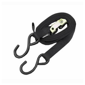 Rachet/Cam Straps Medium Duty Tie-Downs 15 feet long nylon web with heavy 3/8 rubber coated hooks Cam type buckle will not slip To release simply press down Adjusts down to 12 inches So many uses - truck, trailer cargo, motorcycles, boats... Read more
