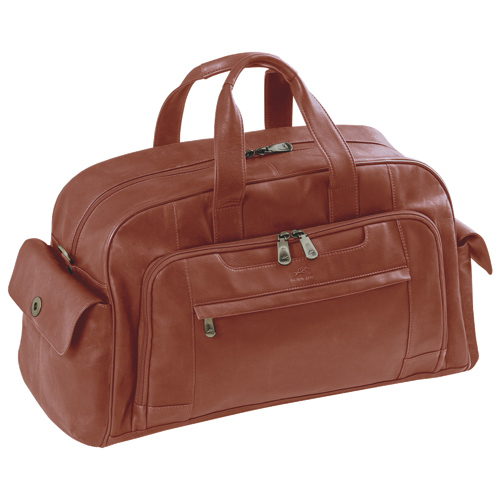 Mancini Leather Carry-On Bag (98227-CG) - Cognac Luxurious and versatile, this carry-on bag from Mancini has a large zippered compartment, multiple front pockets, and snap pockets on the side to keep all your items organized and accessible. Mad... Read more