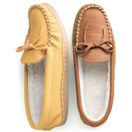For 1/2 sizes, order the next full size up. soft deertan leather upper warm man-made pile lining thermoplastic rubber outsole moccasin style hand laced Medium (fits D width) Made in Canada of domestic and imported components