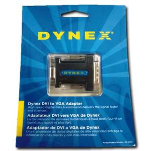 Dynex DVI To VGA Adapter (DX-D1114) High speed digital data transmission delivers the signal faster and stronger. This adapter converts a DVI-I video card to a VGA analog receptacle. Thumbscrews and barrel nuts make installation a breeze. Ful... Read more