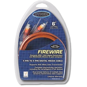 Dynex FireWire 4-Pin To 4-Pin 6' Digital Media Cable (TE-FW1394) This 4 pin to 4 Pin digital media cable connects IEEE 1394 digital camcorders and multimedia components to your PC. It is also compatible with Apple FireWire and Sony i.Link, a... Read more
