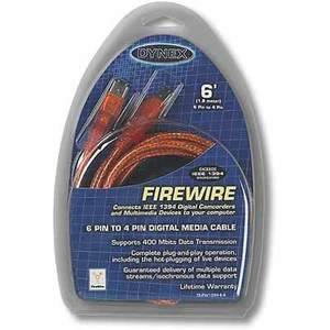 Dynex Firewire 6-Pin To 4-Pin 6' Digital Media Cable (TE-FW1394) This FireWire cable by Dynex connects IEEE 1394 digital camcorders and multimedia components to your PC. It is compatible with Apple FireWire and Sony i.Link, and has HDT... Read more