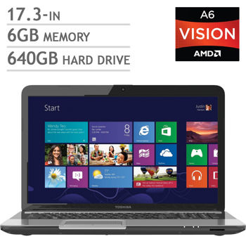 Toshiba Satellite 17.3" Laptop featuring AMD Comal Dual Core A6-4400M Processor (L870D-00R)... view