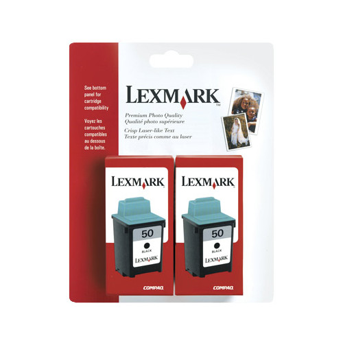 OverviewThis Lexmark #50 Black Twin Pack Ink cartridge generate optimum print quality using pigment-based ink for text that is water resistant and fade resistant for document storage. Compatible with Lexmark Z12, Z715, Z22, Z32, Z705, P707, P706... Read more