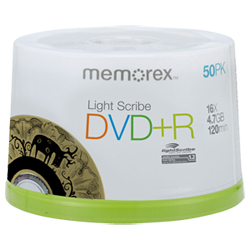 Memorex 50-Pack 16X 4.7GB DVD+R With LightScribe view