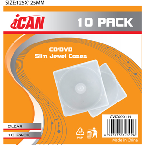 iCAN 10 Pack CD Cases (YXD15D) - 5.0mm Super Clear & Slimline PP
