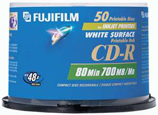 FUJI CD-R 50PK PRINTABLE WHITE INKJET 50 Pack of 48x CD-R Discs Allows for the printing of custom labels on the disc using compatible inkjet printers