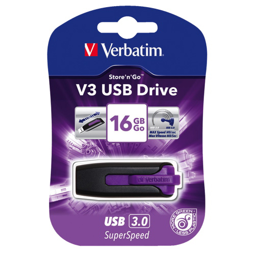 Verbatim Store 'N' Go 16GB USB 3.0 Flash Drive (49180) - Black/Violet view