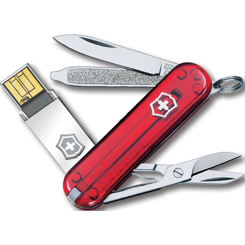 The Victorinox Signature Slim combines a pen with six handy tools and a detachable USB hard drive. It's a next-generation device that's right at home in anyone's pocket. More Information 8GB detachable flash drive Blade Scissors Nail file with... Read more