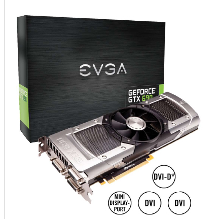 EVGA GeForce GTX 690 4096MB GDDR5 (04G-P4-2690-KR) nVidia GeForce GTX 690 Chipset (1019Mhz) 4096MB GDDR5 (6008Mhz) 3x DVI-I/Mini Display Port PCI Express 3.0 Graphics Card
