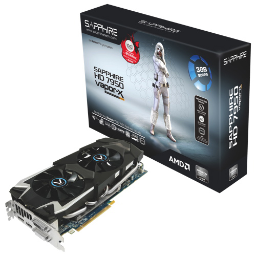Sapphire HD 7950 Vapor-X 3GB GDDR5 PCI-E Video Card The Sapphire HD 7950 3GB OC with Boost Vapor X Edition features an 8-phase power design and runs at a core clock speed of 850MHz, which can be increased to 950MHz with PowerTune Dynamic Boost. Its... Read more