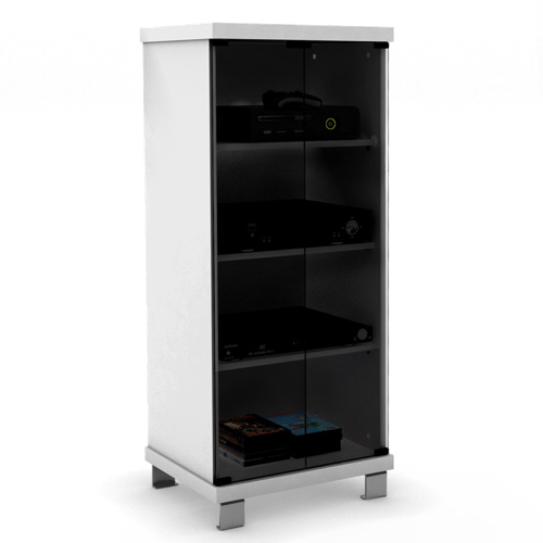 Sonax Component Shelf (C-011-CHT) - White Keep all your AV components neatly organized with this Sonax Component Stand. It has a slim, vertical profile that fits perfectly in tight spaces and keeps your electronics hidden behind tempered glas... Read more