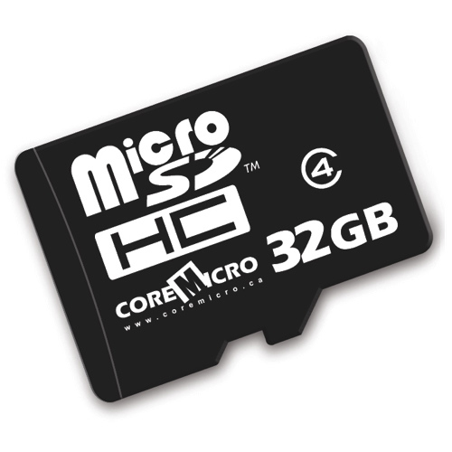 CoreMicro 32GB Micro SDHC Class 4 Memory Card (CMMICROSDCL4/32GB) The MicroSDHC (Secure Digital High Capacity) card is about a quarter of the size of an SD card and is the newest standard of SD flash memory specifically designed for use wit... Read more