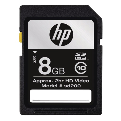 HP 8GB SDHC Class 10 Memory Card The HP Class 10 rated SDHC memory card is designed to keep up with your high-megapixel camera or HD camcorder. It gives you up to 8 gigs of space to capture every moment and offers fast 20MBps transfer speeds... Read more
