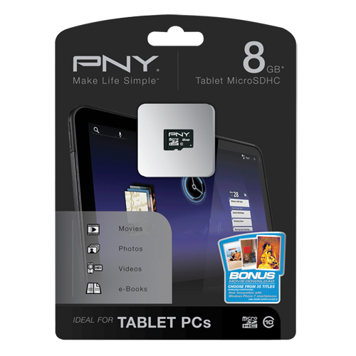 PNY 8GB Tablet MicroSDHC Memory Card PNY's 8GB Tablet MicroSDHC Memory Card, let's you get the most out of your tablet PC, cell phone, PDA, or SmartPhone to download and play music, games, video. Business users will be able to store more email... Read more