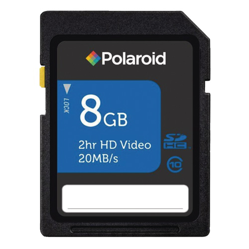 Polaroid 8GB SDHC Class 10 Memory Card You'll have tons of space for your photos and HD videos with the Polaroid SDHC flash memory card. It offers 8GB of storage capacity and is ideal for high end DSLRs and HD video cameras. A Class 10 ratin... Read more