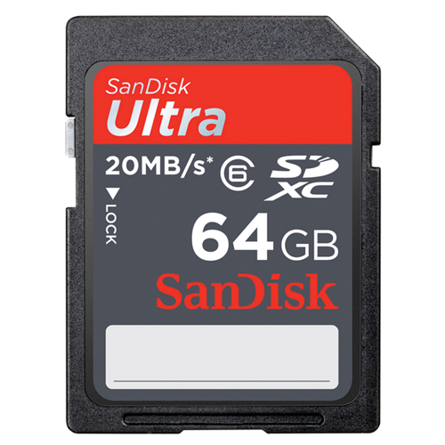 SanDisk Ultra 64GB SDXC Class 6 Memory Card You'll have all the space you need for your photos, videos, files, and more with this Sandisk large capacity SDXC memory card. It offers 64GB of storage capacity and is ideal for high megapixel SDX... Read more