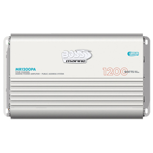 Boss 1200W 4-Channel Marine Amp (MR1200PA) The Boss Marine Amplifier features a unique rubber door which tighlty seals all control panel openings when not in use. It also uses in-line waterproof connectors for all input and output connection... Read more