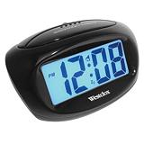Alarm Clock features a 1" LCD Display with blue backlight Large snooze button allows you to easily press for additional sleep Battery operated with two AAA batteries (not included)