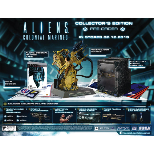 Aliens: Colonial Marines Collector's Edition (PlayStation 3) It's up to you to wipe out the Xeno infestation in Aliens: Colonial Marines. Created by Gearbox, this first-person shooter is steeped in the eerie, claustrophobic and terrifyin... Read more