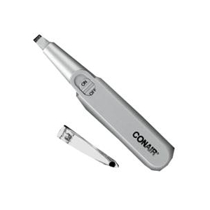 Personal Trimmers Nose and Ear Hair Trimmer Precision trimmer removes unwanted hair from nose, ears or eyebrows Slim, compact design Stainless steel blades On/off switch Protective cap Operates on 1 "AA" battery (included)