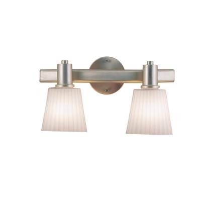 The Hanna bath collection is powerfully soothing and sophisticated. Softly pleated frosted white shades are held up with a substantial brushed nickel base. Mounting hardware included for quick installation. Satin nickel finish Classic froste... Read more