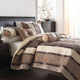 twin measures 68'' w. x 90'' l., double is 86'' w. x 90'' l., queen 92'' w. x 96'' l., king is 108'' w. x 96'' l. striped faux velvet with narrow flocked floral bands reverses to solid made of polyester: quilt with cotton fill machine wash