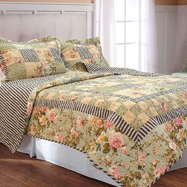 Patchwork style quilt with contemporary diamond shape quilting. Great attention to detail. Set includes quit and 1 sham. 100% cotton outer for natural softness 90% cotton 10% polyester fill for stability Prewashed