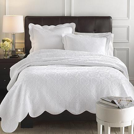 styled with scalloped edges quilted cotton top with polyester microfibre backing cotton-polyester fill twin quilt is 68" w. x 90" l., double/ queen is 90" w. x 90" l., king is 108"w. x 96"l. 2 standard-size shams (twin has 1 sham, king set has... Read more