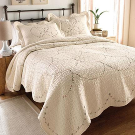 New! Only at Sears! twin is 68" w. x 90" l., double 86" w. x 90" l., queen 92" w. x 96" l., king 108" w. x 96" l. quilted vermicelli embroidery with scalloped edges includes 2 standard-size padded shams (twin has 1 sham; king has 2 king-siz... Read more