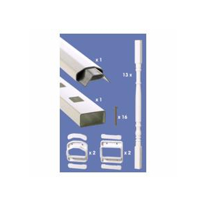 Spindle/Baluster Rail Kit Premium white vinyl line railing kit with colonial balusters 36" rail height and 6' rail length measured on post centers Includes all rails, in-fill, connector brackets and hardware for installation on 4x4 woo... Read more