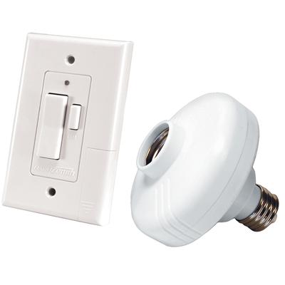The Heath Zenith Wireless Command Add a switch socket set, WC-6004-WH gives you switch control of a light without new wiring. The add a switch works with the socket receiver up to 100 feet to turn on, off and dim up to five different light levels... Read more