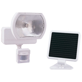 Eco-responsible. Solar powered halogen security light with 180° motion detector. Up to 70 ft. (21 m) detection range. Weatherproof design. 15-W halogen light bulb included (300 lumen). Long lasting rechargeable battery operates up to 15 days without... Read more
