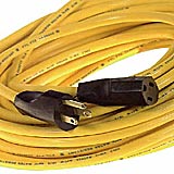 Outdoor extension cord. 13 A. 125 V. 16/3 SJTW type. 49 ft. (15 m) power cord. 3 conductors. Single outlet. Grounded. Made of plastic. Yellow. Also offered in 82 ft. (25 m) (product code: 02385185).