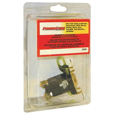 Starter Solenoid Universal Single Pole(chassis ground). Terminal post & sleeve will accommodate both 5/16" & 1/4" terminal eyelets. Pole includes adapters to fit spade connectors. Fits: Cub Cadet, Craftsman, Husqvarana, MTD, Murray, Poulan, Sears,... Read more
