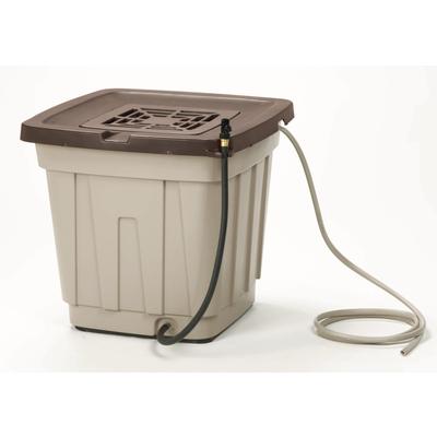 Suncast Rain Barrel. Ideal for catching and storing 100% pure rain water. Durable resin construction . Includes drain hose for water usage and shut-off valve for hose hook-up. Overflow hose doubles as connector hose. Debris filter for keeping leaves... Read more