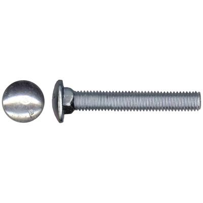 A bolt mostly used in wood with a domed top and a square under the head. This pulls into the wood as the nut is tightened. Steel is zinc plated for moderate protection against rust. Zinc Plated