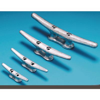 Tradtional, cast iron, hot dipped galvanized dock cleats. This 8" cleat is the durable and practical solution for dock side mooring. Cast Iron Recessed hexangonal mounting holes are ideal for single tool installation