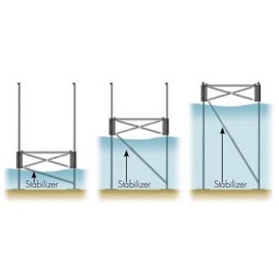 The 4' telescopic deep water brace, stabilizes a 4' wide dock in deep water. Constructed of sturdy aluminum with all stainless steel hardware Easily adjusts, by loosing lock lever, for varying leg heights Recommended for water depths of 3.5'-6.5'
