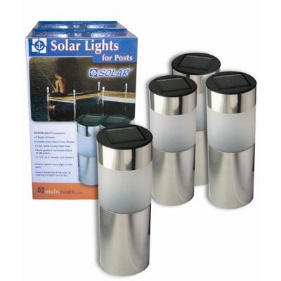 4 Pack Solar Post Lights - these Solar Post lights can be inserted on round posts or piles of various diameter (1" 11/16 inches to 2" 1/8 inches). Special adaptors allow you to level and adjust light - no need to cut piles. With (3) three brigh... Read more