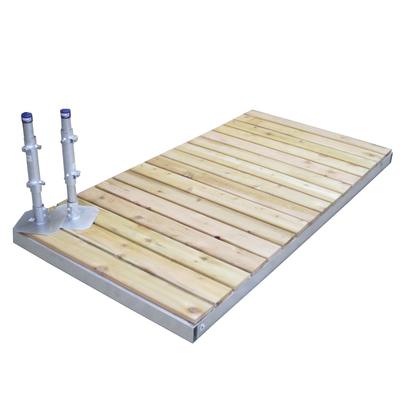 The 4 X 8 ft aluminum shore ramp kit includes the aluminum frame, two cedar decking panels, two 2.5 ft pipes, pipe holders, pipe foot plates and vinyl caps. Mounting plates and hardware included. Measures 48 in. x 96 in. x 3 in. Constructed fro... Read more