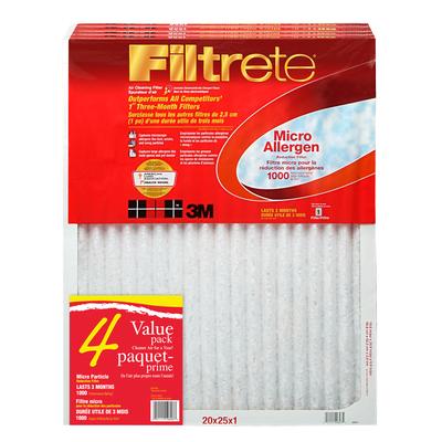 3M's Filtrete Air Cleaning Filter - The #1 Brand More People Trust for Cleaner Indoor Air. 1000 Microparticle Rating. 4 Filters per Pack Captures microscopic allergens like dust, smoke, and smog particles Captures large allergens like mold spore... Read more