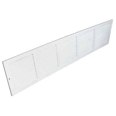 A sturdy, one-piece steel sidewall grille with a durable, decorative finish to suit any home. One-piece all-steel construction 1/3" spaced fins set at 20° angle 3/16" margin turnback Painted grilles have a durable powder-coat finish