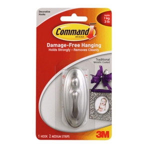 COMMAND 3" Brushed Nickel Plastic Traditional Medium Hook view